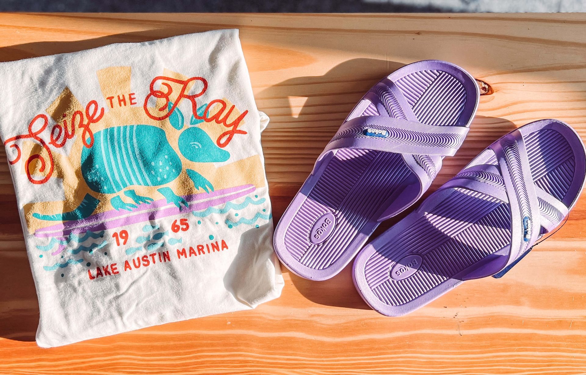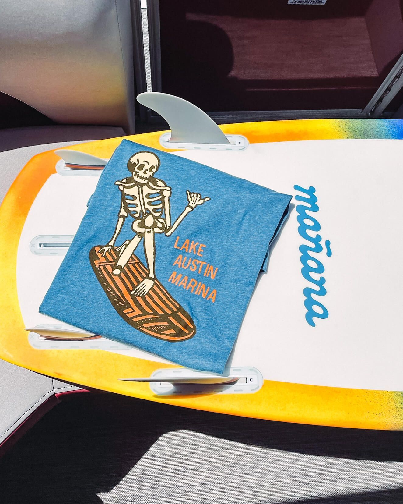 We also provide boating supplies, sunblock, floats, sunglasses, flip-flops, and our line of Lake Austin Marina apparel.